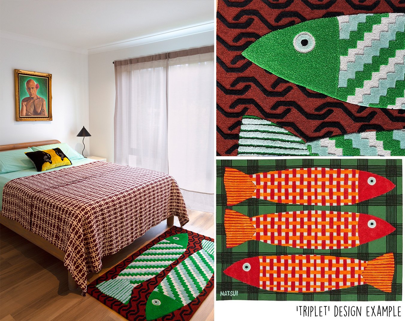 - Size B: 180 x 240 cm (triplet fish design), $4290